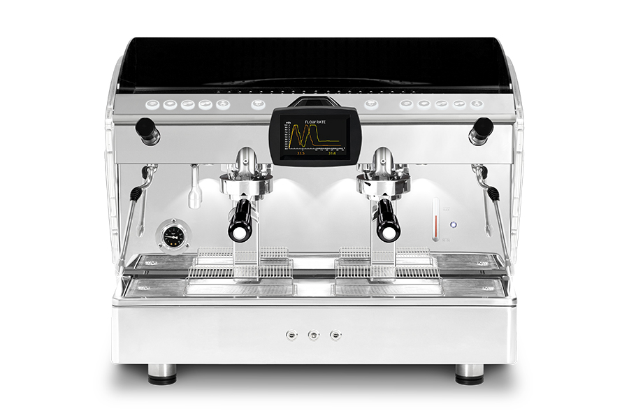 Pour les torréfacteurs et les baristas professionnels, il est également possible d’afficher en temps réel un graphique Débit-Temps (FLOW RATE), qui trace le profil du flux d’eau pendant la pré-infusion et l’extraction, réparti dans le temps. Ces paramètres sont également visibles lors d’extractions simultanées sur chaque groupe d’extraction.